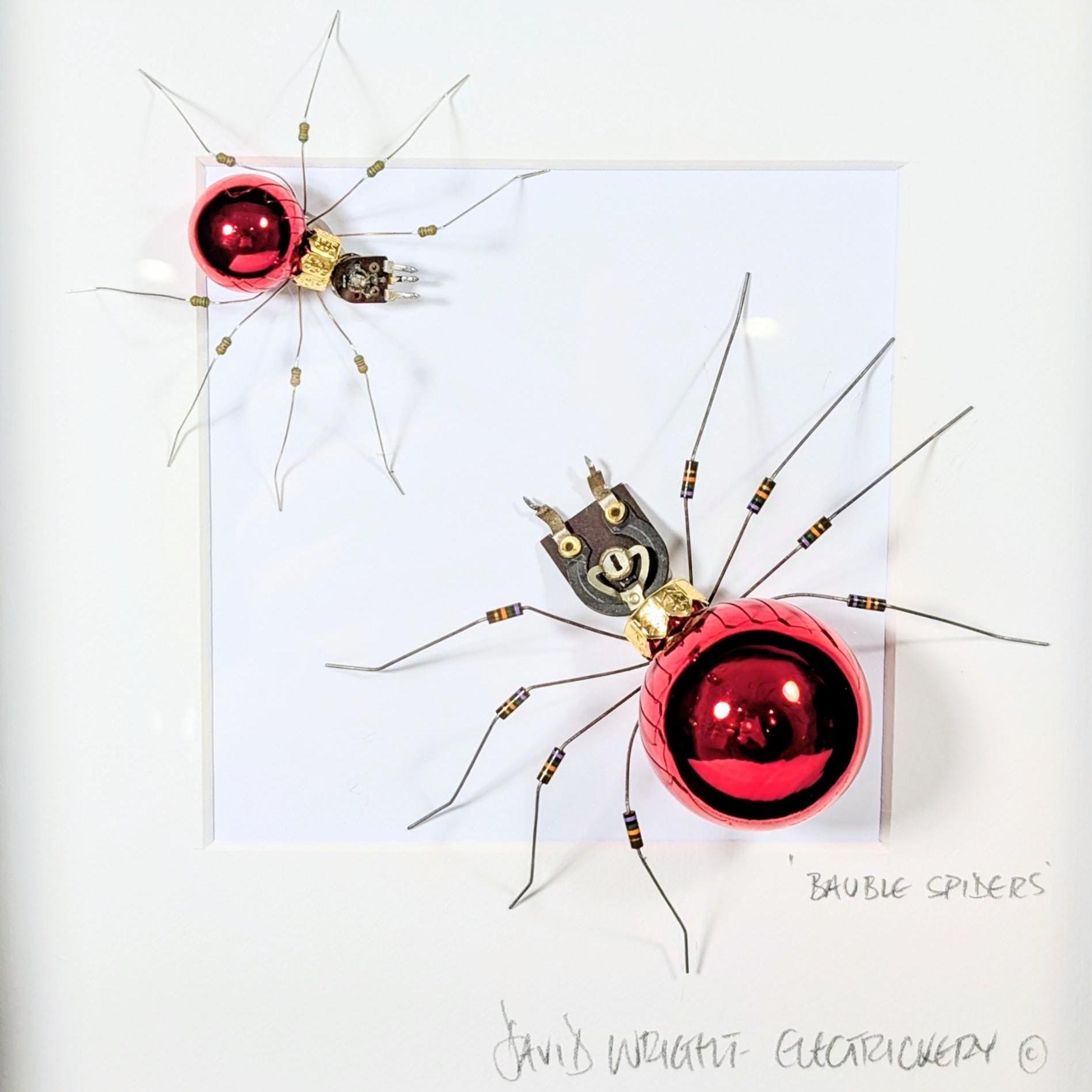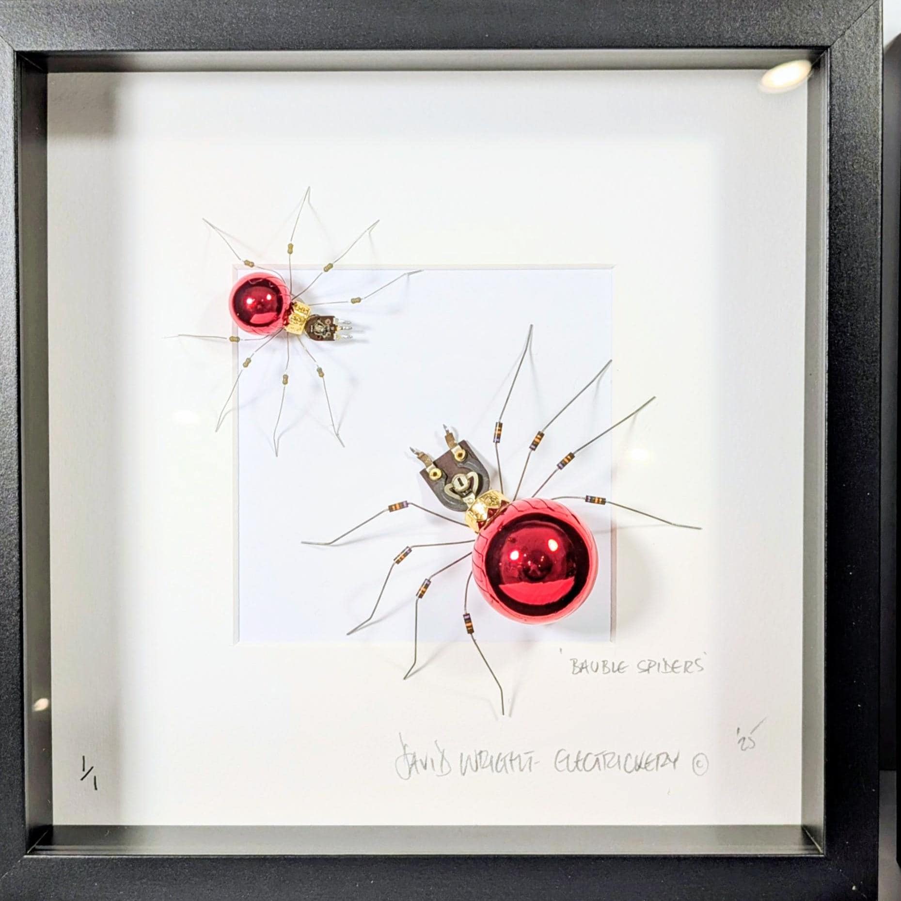 Made from recycled baubles and electrical components mounted in a quality wooden frame.