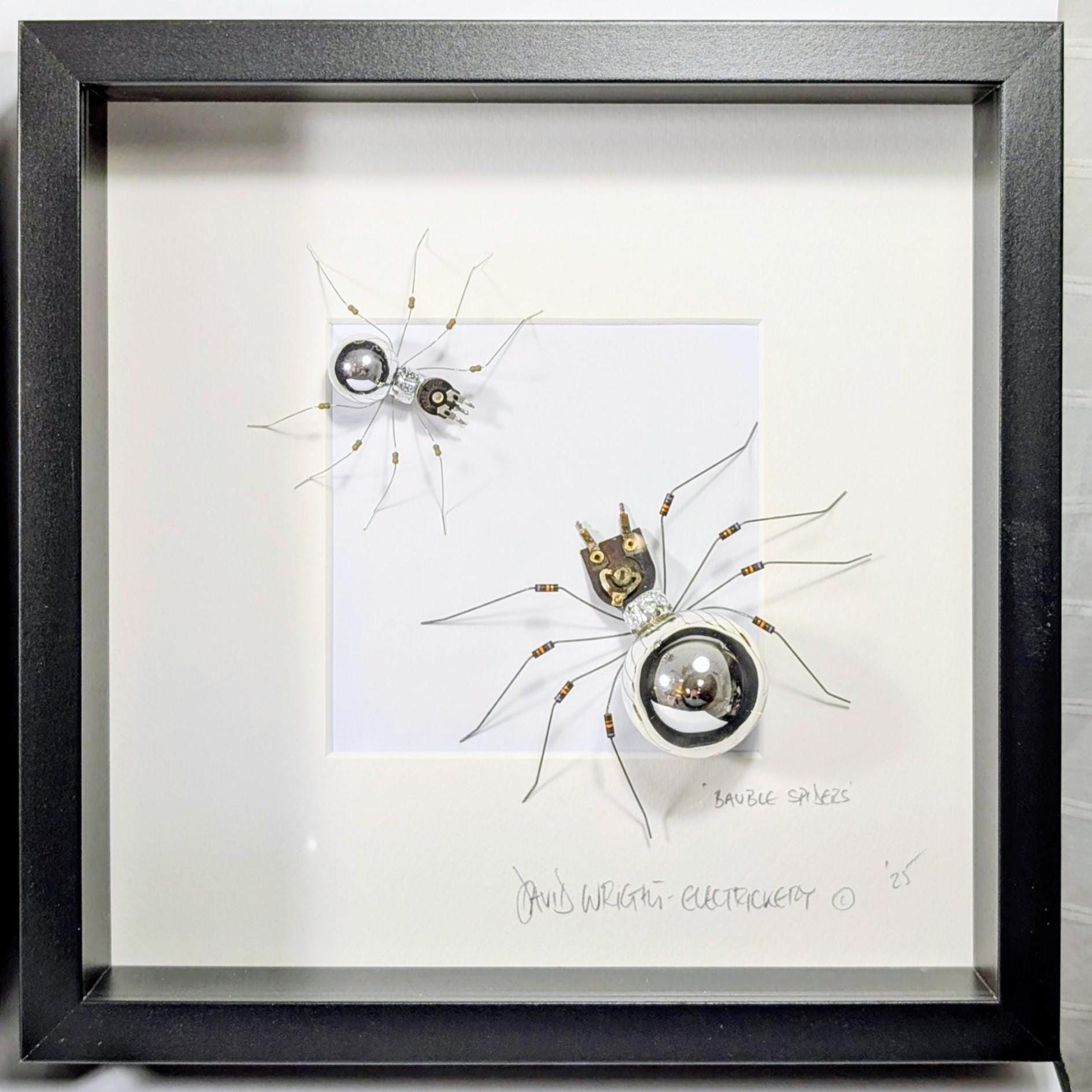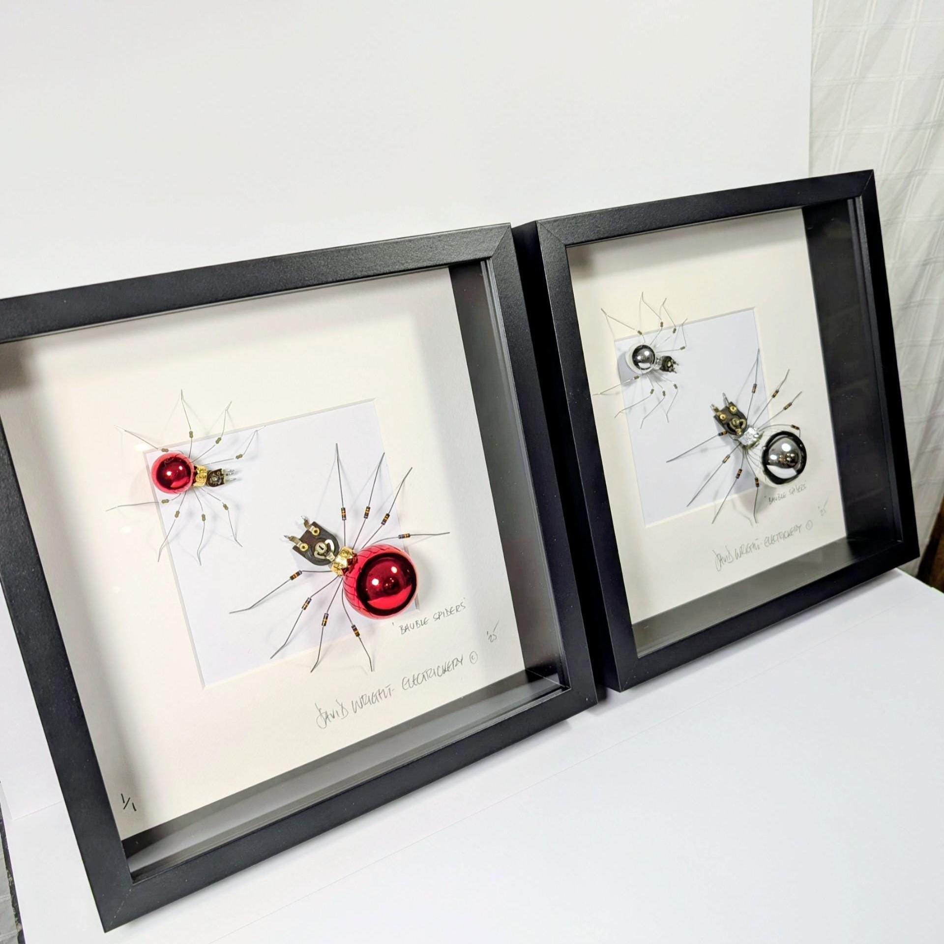 The spiders are mounted in a quality black painted wood display frame is 27cm square & 6.5cm deep Is ready to hang on your wall.